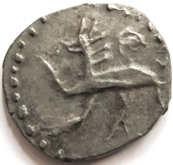 S76 EADBERHT [737-58] Kings of Northumbria silver sceat - class biii obv. EOTBEREhTVF, cross in circle of pellets; rev. fantastic animal left, with pellet under tail, pellet under head and 4 pellets under body. 1.28 g. Spink 847 [£400 in VF]; SL 70-80. Found: Water, north Humberside, July 2004. Lit. 'Kings of Northumbria collection', no. 17. weakly struck in places VERY RARE variety GVF-nEF £350